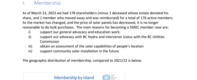 - The total number of systems for SSREC members at the end of March 2022 was 111. In addition, we had one member who moved to the east coast, and we reimbursed her share, and another who passed away and his estate donated his share.